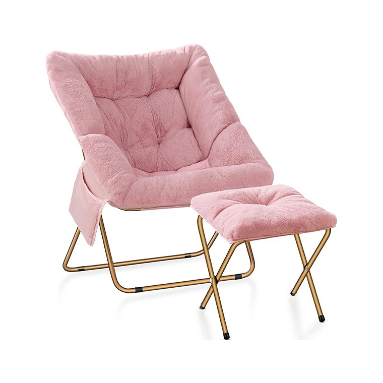 Comfy Saucer Chair for Adults, Foldable Living Room Chairs, Soft Faux Fur Lounge Chair for Bedroom, Reading Chairs, X-Large (Ottoman-Pink)